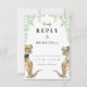 Traga um rugido de entusiasmo para o dia do seu casamento com este cartão de resposta RSVP do Dinossauro, com uma noiva T-Rex divertida e um noivo cercado por um verde botânico de aquarela. Com tipografia caprichosa, moderna e modelos fáceis de personalizar, esta carta captura o espírito divertido da sua história de amor pré-histórica. O único design T-Rex, renderizado em matizes verdes ricos em marrom e eucalipto, é uma encantadora mistura de romance lúdico e natureza, todos trazidos à vida pela talentosa artista Catherine Sweetman. Perfeito para sua recepção de casamento ou janto de ensaio, este cartão RSVP é parte de uma suíte de casamento completa que fornece tudo que você precisa para fazer seu casamento tão memorável e alegre quanto seu amor. Deixe este design divertido e criativo dar o tom para a sua celebração dinotemotemal!