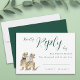 Cartão de cerimônia de resposta ao casamento do Dinossauro. Apresentando uma noiva e noiva T-Rex divertida com a carta de casamento elegante e verde escura, a RSVP traz uma sensação única e caprichosa para o seu dia especial. Escrita elegante no estilo caligrafia e tipografia moderna divertida e fácil de personalizar, fazer simples de combinar com seu estilo de casamento. Projetada pela artista Catherine Sweetman, a aquarela arte apresenta uma charmosa mistura de na moda e amor inspirado em dino. Perfeito para sua recepção de casamento ou janto de ensaio, este cartão RSVP é parte de uma suíte de casamento completa que inclui tudo o que você precisa para fazer sua jornada de casamento tão memorável quanto sua história de amor.