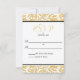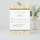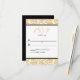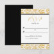 Um Cartão de Resposta de Casamento Dourado e Negro Elegante projetado com trim na moda dourado sobre fundo branco. O texto frontal inclui: A Data de Resposta e o espaço para os convidados inserirem seus nomes. O verso é um fundo preto. Para personalizar, basta inserir seus detalhes em nosso modelo fácil, substituindo o texto de exemplo. Certifique-se de ver toda a Coleção de Casamentos de Estilo Elegante Dourado e Preto.