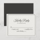 Refinado e romântico, este cartão de RSVP apresenta uma frente creme suave com uma moldura preta delicada e destaques de caligrafia elegante. Medindo 4,25" x 5,5" na vertical, inclui “Kindly Reply” em letra cursiva elegante grande, uma data de RSVP personalizável, uma linha personalizada para os nomes dos convidados e três opções de resposta graciosas: Aceita com prazer, Recusa com pesar e Número de participantes. O verso é preto fosco para um acabamento ousado e polido. Elegante, versátil e projetado para complementar temas de casamento formais, minimalistas ou românticos. Este cartão de RSVP atemporal combina perfeitamente com nossa coleção correspondente - unindo seu conjunto com estilo sem esforço.