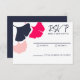 Adicione o cartão de resposta perfeito ao pacote de convites de casamento. Faça uma declaração com cores ousadas e um gráfico limpo e simples. Essas respostas apresentam ilustrações de folhas de ginkgo em azul marinho, rosa claro e magenta tingido de coral brilhante.