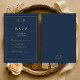 Elegante cartão de resposta de casamento azul marinho e dourado com um design de monograma clássico. Criado para casais que desejam um visual refinado e formal que complemente a papelaria de casamento de luxo. Ideal para casamentos tradicionais, modernos ou formais. Perfeito para combinar com convites de casamento azuis e dourados. Texto editável com um layout limpo e pronto para impressão.
