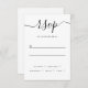 Colete respostas com estilo usando esta placa RSVP em preto-e-branco com letras elegantes de script e um layout minimalista. Os convidados podem marcar facilmente a sua presença, escolher a sua opção de refeição e devolver o cartão até à data solicitada. Perfeitamente coordenado com os modernos conjuntos de papelaria de casamento, este design simples e eterno adiciona um toque refinado aos seus convites de casamento, mantendo os detalhes claros e fáceis de seguir.