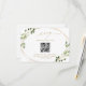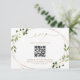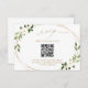 Cartão de Recepção de casamento Geométrico Greenery: Este cartão rsvp permitirá que os seus convidados digitalizem o seu website de casamento com o código QR para responderem online. Este design corresponde à nossa Coleção Geométrica de Verde, com uma estrutura moderna de folha de ouro falsa rodeada por buquês florais e verdes de cor d'água rústica.