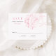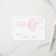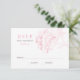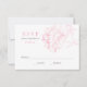 Um cartão de RSVP delicado adornado com uma única flor de peônia rosa e texto com acento cinza em um fundo branco crocante. O design apresenta um prazo para resposta, linha para nome e caixas de seleção para aceitar ou lamentar para facilitar as respostas dos convidados. Toda a redação é editável para coordenar com o cronograma do seu conjunto de casamento.