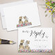 Cartão de cerimônia de resposta RSVP de casamento com o dinossauro. Apresentando uma noiva e um noivo T-Rex em um vibrante prado pré-histórico de flor silvestre, esta carta traz uma sensação única e caprichosa para o seu dia especial. A tipografia moderna no estilo caligráfico é divertida e fácil de personalizar, fazer simples de combinar com o estilo do seu casamento. Projetada pela talentosa Catherine Sweetman, a aquarela arte apresenta uma encantadora mistura de flores de verão e amor inspirado em dino. Perfeito para sua recepção de casamento ou janto de ensaio, este cartão RSVP é parte de uma suíte de casamento completa que inclui tudo o que você precisa para fazer sua jornada de casamento tão memorável quanto sua história de amor.