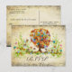 Estética inspirada no Renascimento Medieval é o cartão de resposta "RSVP Flor Árvore Folclórica Florestal" encimado por um caprichoso florescer de flores silvestres da floresta que você simplesmente tem que ver! Este cartão postal de resposta tem todas as cores: laranja terracota, coral, rosa, marrom, amarelo, elegância e azul. Imagine uma árvore romântica e caprichosa da primavera, verão ou outono em uma floresta encantada ao longo de uma elegante estrada de fazenda country. Tão colorido e folclórico! Uma estética botânica de arte popular, com certeza. Além disso, com todas essas flores giratórias, este design divertido irradia aquela estética boêmia e é perfeito para casamentos de primavera, verão e outono. Qualquer época, exceto inverno, na verdade. Esta árvore marrom em tons terrosos está coberta pelas flores coloridas
