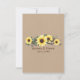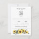 Cartões de resposta de madeiras e elegantes para jardins de girassol com girassóis amarelados brilhantes, cones de pinheiro, ramos de árvores e eucalipto. Este estilo vertical rsvp tem um lado branco nítido na frente para facilitar o escrevendo, com duas linhas para os nomes de hóspedes e uma linha para você escrever na quantidade específica de hóspedes convidados para eliminar a confusão. A linha de bônus na parte inferior é uma maneira divertida de pedir pedidos de música ou alterá-la para restrições dietéticas ou outros comentários. O verso deste cartão de resposta tem um papel kraft bicho papelão marrom com nomes de noiva e noiva e data de casamento.