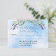 Um céu branco e azul de verão como fundo, texto negro. Decorado com flores de lavanda e verde de eucalipto. Personalize e adicione uma resposta por data. Voltar: adicione o URL do seu site de casamento ao código QR para obter mais detalhes e/ou RSVP