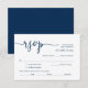 Esta é a bela placa de gabinete RSVP (Responder) Romântica Moderna, em Marinho Azul, onde você pode editá-la, mudar de cor e formatá-la de acordo com a sua exigência de design, com opções de refeição, assentos reservados, atendimento de números e opção de solicitação de música. #TeeshaDerrick