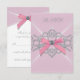 Convite de RSVP para festa de aniversário de 16 anos com laço rosa e diamantes rosa. Resposta de RSVP rosa. Resposta de RSVP com diamante. Resposta de RSVP para festa de aniversário de Sweet sixteen. Convites para festa de aniversário de Sweet sixteen rosa.