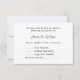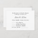 Cartões de RSVP de casamento para uma resposta de texto e sem uma linha para os nomes. Inclua a data de resposta e uma lista de opções de menu, até três com espaços entre as linhas.
