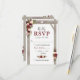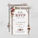 Cartões de resposta de casamento outono elegantes, com um fundo branco clássico, que pode ser mudado para qualquer cor, um display floral de cor-de-água, marsala red & blush, num arco de casamento de madeira rústico, um coração esculpido com as iniciais dos casais, e um modelo de rsvp de casamento moderno, com uma opção de menu.