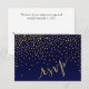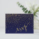 Este cartão de resposta RSVP chic apresenta flocos cintilantes de confete quadrado dourado que se espalham pelo corpo deste cartão azul-marinho. Produtos correspondentes disponíveis. Vem em 6 cores: berinjela, azul-marinho, turquesa, preto, rosa e areia. Clique no botão PERSONALIZAR para personalizar com seu próprio texto. PARA VER A COLEÇÃO COMPLETA, VISITE MEU SITE: glamprettyweddings.com. Para perguntas ou pedidos personalizados, envie um e-mail para: cheryl@glamprettyweddings.com/contact. Design "Diamonds in the Sky" por Cheryl Daniels © 2014.