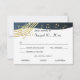 Música no cartão de resposta do Bar do Ar Mitzvah em azul e ouro. Versão mais clara do nosso original. Personalize com seu próprio texto conforme necessário.