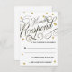 Festivo e na moda; este moderno convite chico brilha com pontos Dourados e uma letra de roteiro de Letras em Preto e Dourado que evoca romance puro. Os cartões Convidado e Salvar a Data também estão disponíveis. Adicione um carimbo de casamento de Envelopes da nossa extensa coleção de correio para combinar perfeitamente com o seu convite. Envelopes, invólucros de envelopes e invólucros Pocket® estão disponíveis como um complemento (à direita) através de zazzle.com