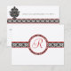 Monograma Elegante em preto e branco traseiro com sotaques vermelhos Chamadas de Placa de Gabinete RSVP de Casamento tema damasco Floral Vitoriano
