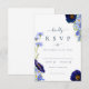 Elegante cor de água floral de verão com flores silvestres, cartão de resposta rsvp de casamento azul perfeito para um casamento de primavera ou verão. Com um belo roteiro romântico elegante de tipografia para personalizar com a data de resposta do casamento e as informações de presença usando modelos fáceis de usar. Flores silvestres únicas, incluindo flores de milho, papoilas, cosmos e me esqueçam de nãos com delicada mão de folhagem pintada pela artista Catherine Sweetman em azul de córnea, azul empoeirado, azul esbranquiçado, azul marinho, roxo e verde. Ideal para o jardim botânico, primavera ou casamento de verão. Encontre itens correspondentes na elegante suíte de casamento floral azul de verão