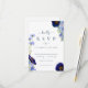 Elegante cor de água floral de verão com flores silvestres cartão de resposta rsvp de casamento azul com noiva e monograma perfeito para um casamento de primavera ou verão. Com um belo roteiro romântico elegante de tipografia para personalizar com a data de resposta do casamento e as informações de presença usando modelos fáceis de usar. Flores silvestres únicas, incluindo flores de milho, papoilas, cosmos e me esqueçam de nãos com delicada mão de folhagem pintada pela artista Catherine Sweetman em azul de córnea, azul empoeirado, azul esbranquiçado, azul marinho, roxo e verde. Ideal para o jardim botânico, primavera ou casamento de verão. Encontre itens correspondentes na elegante suíte de casamento floral azul de verão