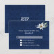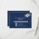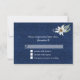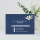 Cartão de resposta RSVP de casamento elegante, com influência europeia, feito em uma damáscara azul-em-azul com Edelweiss solteiro branco, no topo. Personalize o texto personalizado branco para atender às suas necessidades.