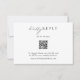 Este código de QR minimalista, o cartão RSVP de casamento pode ser usado para permitir que seus convidados respondam online no seu site de casamento. Esta design moderna e elegante apresenta uma fonte romântica, caprichosa, escrita à mão, com script de caligrafia. Com a paleta de cores neutra, preta e branca, ela pode ser usada para um casamento no primavera, verão, outono ou inverno e funcionaria bem para uma variedade de temas de casamento, incluindo boho, minimalista, chic rusticado e até formal. Altere facilmente a redação utilizando o texto modelo. Criado como parte da minha coleção de casamento Katerina. Não se esqueça de procurar os outros itens neste conjunto para criar uma busca sofisticada e coordenada pela celebração do seu casamento e pelos eventos que o rodeiam. Para adicionar texto ou alterar o posicionamento, alterar fontes ou cores de fonte ou adicionar gráficos, clique em "Personalizar" e "Editar usando a ferramenta design". Se precisar de ajuda adicional para ajustar este modelo, aproveite o serviço gratuito do Zazzle em https://www.zazzle.com/live ou entre em contato comigo através do sistema de mensagens do Zazzle. Por favor, observe que eu crio os designs, mas toda a impressão e envio é feita pela Zazzle em suas instalações de produção, de modo que, se houver algum problema com seu pedido, entre em contato com o suporte ao cliente deles em 1-888-892-9953 ou https://www.zazzle.com/about/ask.