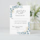 Coletar as respostas dos convidados com estilo com este cartão de RSVP elegante "Floral Azul Desbotado e Dourado". O design apresenta rosas azuis românticas em aquarela combinadas com elementos geométricos modernos em dourado falso, combinando perfeitamente com o conjunto de convites.