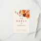 Cartão de Resposta de Casamento Moderno e Elegante com Aquarela de Flores Silvestres, o complemento perfeito para o seu convite de casamento. Com características únicas de boho com flores silvestres pintadas à mão em aquarela pela artista Catherine Sweetman, este cartão captura a beleza do outono com seu design elegante de flores secas. A escrita caprichosa em laranja queimada elegante e a tipografia moderna adicionam um toque estiloso, enquanto a paleta de cores terrosas de laranja queimada, terracota, rosa, roxo, marrom e bege evoca a calidez da estação. O modelo fácil de usar permite que você inclua todos os detalhes essenciais de RSVP. Ideal para casamentos no final do verão e outono, este cartão de RSVP foi projetado para se encaixar perfeitamente com um tema de casamento boho e rústico.