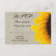 Cartões de RSVP de Casamento Rústico com Girassol Amarelo com uma foto ousada de um girassol em um efeito de foto de linho bege. Uma escolha linda para o cartão de resposta do convite de casamento se você está tendo um casamento country, casamento com tema de aniagem ou um casamento de outono. Totalmente personalizável, incluindo sua escolha de fontes vintage rústicas usando o menu de edição. Adicione suas informações pessoais e escolha seu esquema de cores, incluindo muitas opções de papel maravilhosas. Precisa de ajuda para personalizar seu pacote de casamento? Por favor, entre em contato com luxuryweddinginvitations@gmail.com