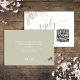 Não faça esforço de resposta com este cartão RSVP de casamento, projetado para casais que adoram um estilo de resposta simples e elegante. Apresentando um roteiro de caligrafia minimalista e tipografia clássica, este cartão combina o encanto do eterno com a conveniência moderna. O cartão de resposta de código QR permite que os hóspedes RSVP possam facilmente ser consultados através do seu site de casamento moderno. Acentuado com folhas de cor d'água verde e folhas de folhagem de na moda, adiciona um toque natural. Completa com uma noiva personalizada e um monograma nobre, é uma escolha sofisticada e simplista para o seu grande dia.