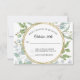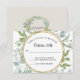 Cartão de resposta RSVP correspondente com envelopes brancos gratuitos. Pintura em aquarela, folhagem de eucalipto verdejante, forma uma coroa em torno de uma moldura fina e simples com acento dourado e suas opções de RSVP. Direitos autorais da obra de arte, Audrey Jeanne Roberts.