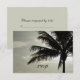 Personalize a Placa de Resposta RSVP de Casamento de Casamento da Palma da Árvore de Palma natural Silhouette Beach com a data de resposta do seu casamento e combine com os convites correspondentes para criar um conjunto coordenado de papelaria de casamento. Esta carta de casamento dos tropistas, a r.s.v.p., apresenta uma fotografia natural de uma palmeira silenciada na costa do oceano.