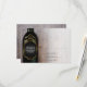 Um fundo rústico ajustado bem em um vinhedo ou adega temido casamento. Uma garrafa de vinho fica à frente de um barril de vinho rústico e com uvas de vinho, folhas e um copo de vinho à sua volta neste cartão de resposta rústico da vinha. O rótulo age como o convite em si. O barril de vinho se repete no reverso com os nomes da noiva e do noivo e a data do evento em destaque. Disponível com produtos correspondentes.