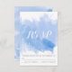 Placa de resposta/resposta RSVP de cor d'água do abstrato moderno salpicante azul casamento no inverno com tela de cor d'água com abertura de tinta com textura em tons azuis, árvores em branco com neve, flocos de neve e texto em branco e cinza. Este design de casamento elegante e na moda é um modelo perfeito para o seu casamento no inverno. Note que esta é apenas uma imagem de aquarela e não textura real. Para obter melhores resultados, escolha feltro ou outro papel.