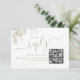 Elevem seus detalhes de casamento com este elegante cartão RSVP de casamento, com um roteiro de caligrafia moderno, tipografia limpa e um conveniente código QR para respostas de convidados. Projetado como um cartão de cercado do site de casamento, é fácil personalizar e perfeito para planejamento simplificado. A paleta verde de sábio e as folhas verde-aquáticas criam uma estética de eterno que complementa qualquer suite de casamento. Um na moda, uma maneira simples de coletar respostas com graça e facilidade.