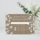 Você está planejando um casamento do tipo Country Western, jardim do quintal ou celeiro de fazenda? Com caixas brancas para os convidados escreverem a resposta, este cartão de resposta RSVP correspondente está pronto para ser enviado de volta para você! Uma cerca de madeira quente de madeira aflita e fundo envelhecido misturado com respiração simples e doce, mas elegante, do Baby's Breath foi pintada manualmente em pastéis de petróleo por Audrey Jeanne Roberts para uma tomada moderna de casamentos rústicos no país. Seu texto de convite para o casamento está escrito em um estilo de tipografia contemporânea que é popular e de tendência. Em uma cor azul de fundo do marinho que você pode mudar para qualquer cor que você queira usar a ferramenta selecionador de cor de fundo.