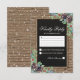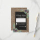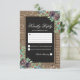 Cartão de resposta de casamento de inverno rústico com fundo de madeira rústica, centro de quadro-negro preto, corda, pinhas de natal, frutas, folhagens, respingos brancos de neve e um modelo de rsvp personalizado.