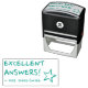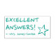 Este design de carimbo motivador apresenta a mensagem motivadora "RESPOSTAS EXCELENTES!" e o nome de um professor personalizado. Ele também apresenta uma forma decorativa de estrela. Pode ser usado por um professor ou educador ao formando o trabalho estudantil, para reconhecer que um aluno fez um trabalho excepcional.