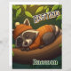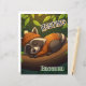 Uma fotografia adorável para o quarto de uma criança. Um bonitinho guaxinim de desenho em um galho de árvore.
