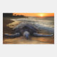 Tartaruga marinha ameaçada na praia no pôr do sol. Oahu Hawaii.