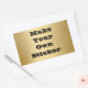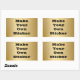 Dourada chapa metálica com aspecto textura de fundo impressa na superfície torna adesivos e selos de envelopes maravilhosos para muitos usos, incluindo prêmios de ouro e etiquetas. Personalize facilmente adicionando qualquer texto com a fonte preta em negrito mostrada ou alterando facilmente a cor e o estilo. Mostrado é o popular adesivo de forma retangular.