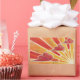 Um sol dourado e laranja se põe e o vento sopra nuvens vermelhas e rosa através do céu. Fique com um design personalizável dourado, laranja, vermelho, rosa e branco para personalizar com seu próprio texto, imagens e ideias. Um lápis de cor original e desenho de tinta metálica de Jess Perry.