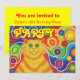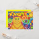 Querida Groovy! Um gato listrado amarelo e laranja com bigodes giratórios e um fundo de arco-íris psíquico com padrão. Convite com um design personalizável amarelo, laranja, vermelho, azul, verde, rosa, roxo e branco para você personalizar com seu próprio texto, imagens e ideias. Um desenho de lápis colorido digitalmente melhorado por Jess Perry.