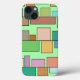 Esta capa de telefone tem uma design moderna de dois retângulos acoplados a linhas horizontais em vários tamanhos e cores boho.