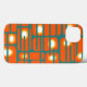 Esta capa de telefone tem um design moderno século médio de retângulos laranja com círculos brancos e dourados e linhas horizontais que os atravessam num campo de chalé.