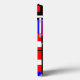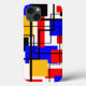 Essa capa de telefone tem um design Bauhaus de retângulos e quadrados com linhas pretas atravessando o design num campo de branco.