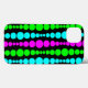 Esta capa de telefone tem um design moderno do século médio de retângulos rochosos, verdes e azuis arredondados de neon em tamanho crescente e decrescente correndo verticalmente num campo de preto.