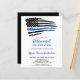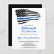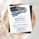 Convites de aposentadoria da polícia de linha azul fina. Celebre anos de serviço dedicado e convide amigos e familiares para a sua festa de aposentadoria na polícia com este Convite para aposentadoria da Polícia de Sinalizador Azul Thin. DESIGN americano na Polícia de Sinalizador, cores modernas, preto branco e design azul. Este convite para aposentadoria de policial também é perfeito para convites para formatura na academia de polícia, mudança de local na personalização. Estes cartões de convite à reforma da polícia orçamental são um alternativo de convites à reforma gratuitos da polícia. Veja nossa coleção para combinar presentes de aposentadoria da polícia, favoritos para festas de aposentadoria da polícia e suprimentos. COPYRIGHT © 2021 Judy Burrows, Black Dog Art - Todos Os Direitos Reservados. Retirada de Polícia de Orçamento Thin Blue Line Convite
