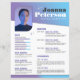 Com sua encantadora paleta colorida de tons azuis e violetas, esse reinício personalizável, o modelo CV exalta um senso de criatividade e profissionalismo. Mostre suas habilidades, qualificações e experiência em um formato visualmente cativante que atrai a atenção do recrutador. Utilize esta modelo para se apresentar com confiança, destacando seus pontos fortes e realizações exclusivos de uma forma que se destaca.