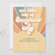 Nosso Pequeno Retro Sunshine inspirou o primeiro convite de aniversário com fontes e cores do estilo 70.