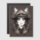 Testemunha Gata Bonita com Terceiro Olho, mau Bat como colar, árvores mortos e fraturas de fundo. Uma fantasia estranha da Emo para o feriado de Halloween. Ilustração vetorial BluedarkArt The ChameleonArt.